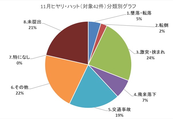 11月は、強風による激突・挟まれ型のヒヤリ・ハットが多い状況でした。
