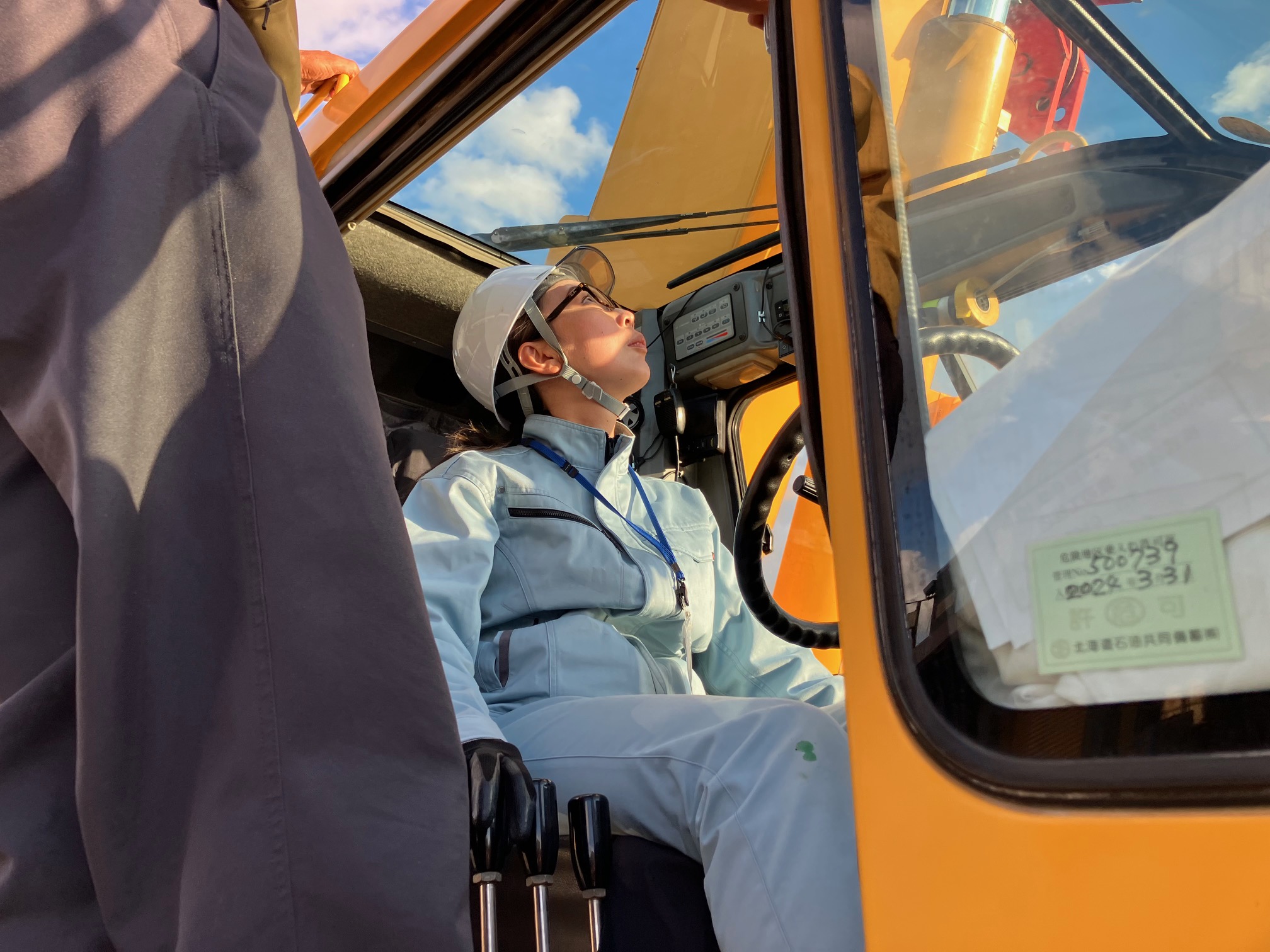 クレーン車は、完全個室で冷暖房完備、快適職場を体験して頂きました。 是非、久慈重機に入社して頂きたいです。