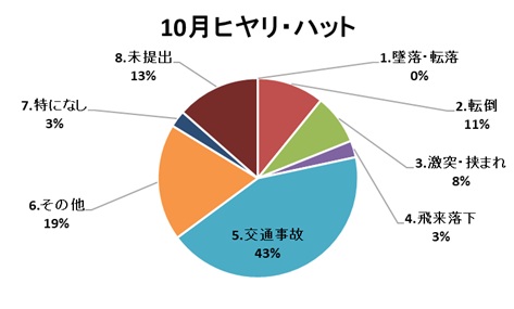 10月も9月同様交通事故型ヒヤリが断トツに多い状況でした。